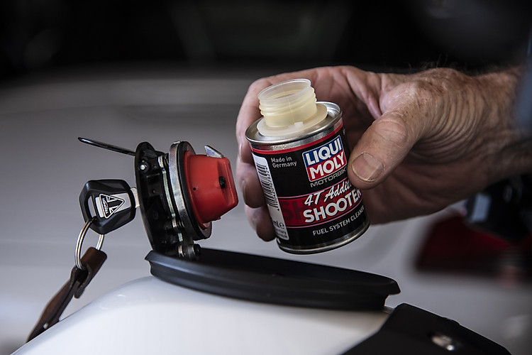 Phụ gia vệ sinh buồng đốt tẩy carbon cho xe máy Liqui Moly 7916 giúp loại bỏ cặn bẩn, muội khói trong hệ thống nhiên liệu, supap, bugi, buồng đốt,...