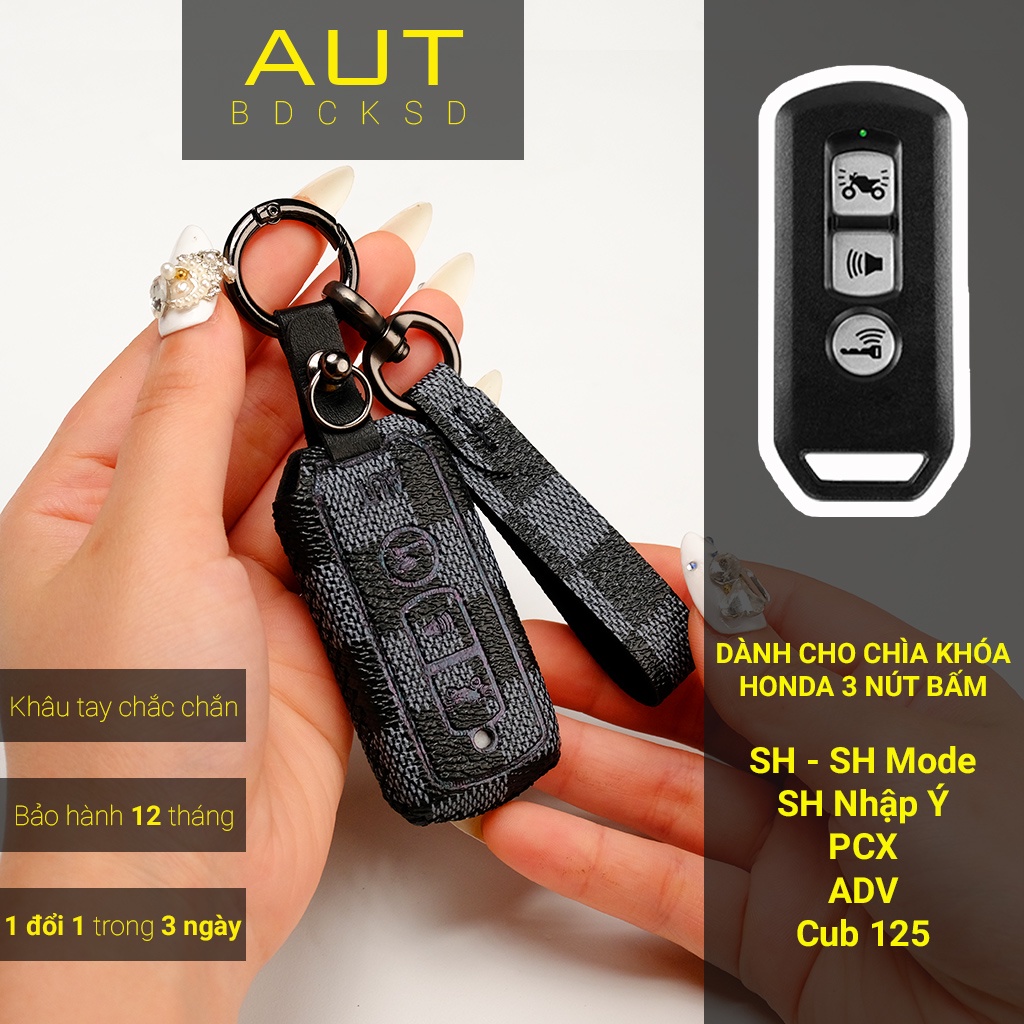 Bao da bảo vệ chìa khoá xe Honda SH SH Mode PCX Cub Adv LV handmade SHKV CD có tay cầm