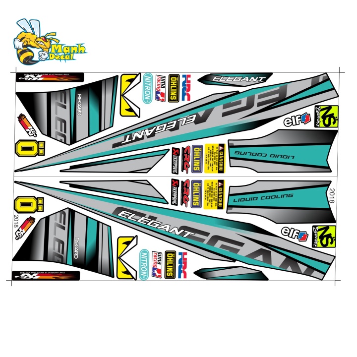 Giới thiệu (FREE SHIP) Tem xe ELEGANT 2018 50 RECARO XANH ĐEN [Mạnh Decal]
