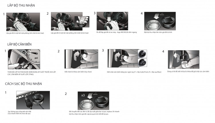 Hệ thống cảm biến đo áp suất lốp cho xe phân khối lớn Michelin 5209 giúp bạn có thể kiểm tra áp suất lôp cho ô tô và cả xe máy.