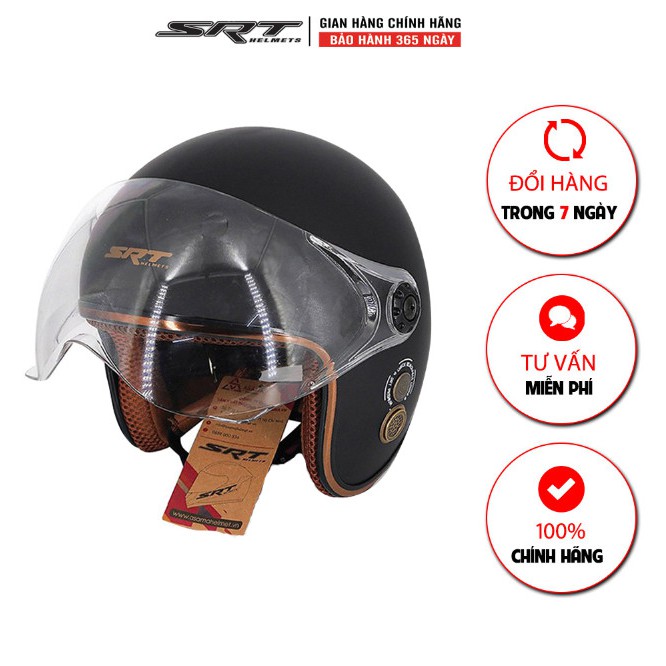 Giới thiệu [Mã BMBAU50 giảm 7% đơn 99K] Mũ bảo hiểm 3 4 SRT - Kính liền viềng đồng - thông gió - kính chống tia UV cao cấp