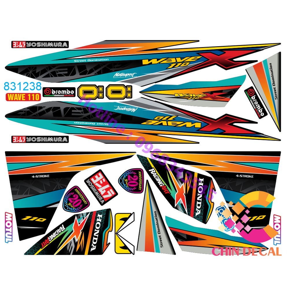 Mô tô, xe máy > Phụ kiện xe máy > Hình dán, logo, huy hiệu || Tem rời WAVE ALPHA 110 Chế X Cam Xanh Lục ( Tem 3 lớp chống nước chống bay màu 831239 )